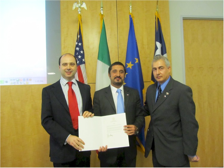 da sinistra il Console Fabrizio Nava, al centro il rappresentante del Governatore Amir Mirabi, a destra Vincenzo Arcobelli, presidente Comites